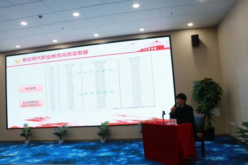 职业教育是国民教育体系的重要组成部分,肩负着培养多样化人才、传承技术技能、促进就业创业的重要职责。为进一步巩固职业教育类型定位,促进职业教育健康发展,深化党史学习教育,11月5日下午,学院副院长杨涛同志就中办、国办《关于推动现代职业教育高质量发展的意见》文件内容,为全体教职工及入党积极分子做专题培训。