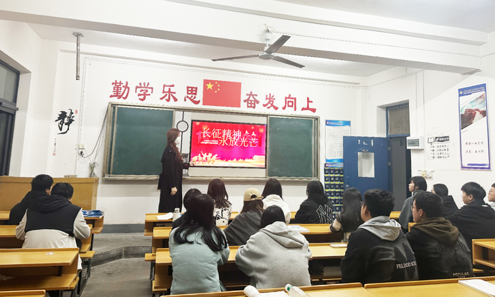 为纪念中国工农红军长征87年纪念,弘扬长征精神,引导广大青年学生追红色记忆、寻红色足迹、承红色精神。2023年9月22日,学院团委组织开展了“回首峥嵘岁月,共悟长征精神"主题团课。各班学生一起重温长征历史,感受峥嵘岁月,学习、传承长征精神。