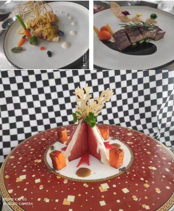 beat365官网穆景国老师在酒店接待国内明星及外宾的场景,而且收到好评及相关人员合影留念,以及日常教学中的菜品展示。