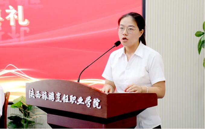 白倩老师代表学院全体教师发言,嘱托毕业生在新征程上脚踏实地、探寻真理、砥砺前行。她回顾了与学生在旅院的点点滴滴,讲到:“你们的存在让我们的教师身份有了真实的意义。”并祝福毕业生前程似锦,身边有爱人携手同行,前路上有坚定方向。