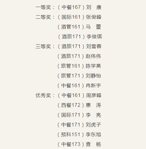 最后,主持人宣布了获奖名单,一等奖一名、二等奖三名、三等奖五名、优秀奖六名。