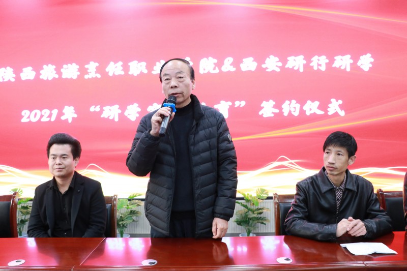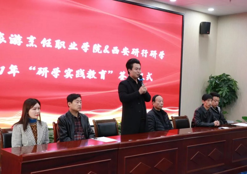 首先,学院党委书记朱选朝同志致辞,他从三方面阐述此次签约研学实践教育是学院、家庭、社会的融合,对学生的成长成才意义重大。要走实走深,把重点放在提高职业技能水平上,让学生进一步了解行业、企业、社会,与时代同步,认清大势,听党话,跟党走,成为新时代能够担当民族大任的时代新人。