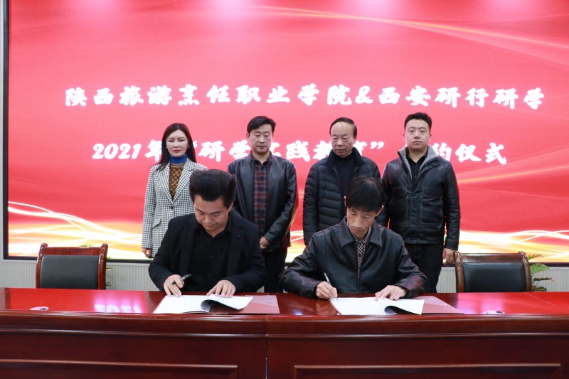 beat365官网副院长杨涛代表学院与西安研行研学品牌创始人付鹏飞签订“研学实践教育”合作协议。