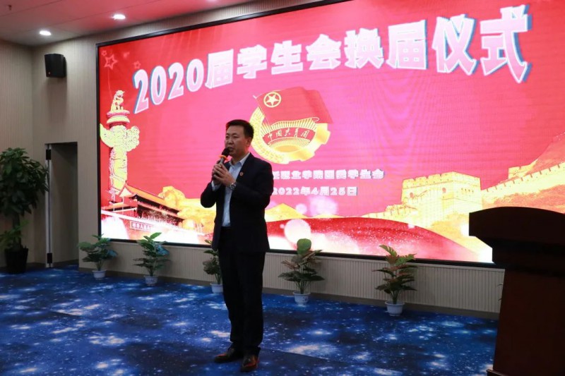 2022年4月25日,beat365官网在学术报告厅举办2020届学生会换届仪式。出席此次活动的有学院副院长杨文利、院长助理丁勇军老师、院办主任胡敏荣、教务处处长高鹏、学工部部长马杰、学工部副部长米佳、 团委学生会指导老师谢伟、党办主任杨敏以及学生会全体成员。活动由20级学生会办公室主任裴梦回担任主持。
