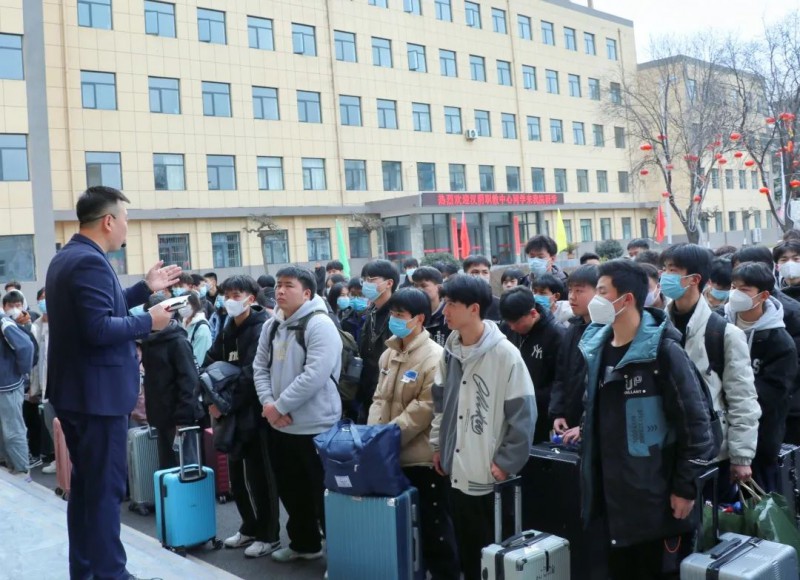 为保障每位来院师生健康,beat365官网学生化身志愿者,协助同学们进行测温,兵役预征班的同学们早已等候多时,在门口列队表示对新同学的欢迎。
