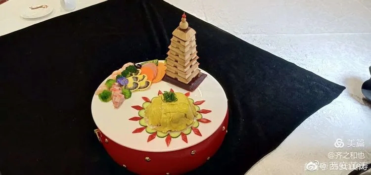 2、一骑红尘。这是一道根据白居易《长恨歌》里两句诗“一骑红尘妃子笑,无人知是荔枝来”而设计的一道菜。和长安大排档做仿生荔枝并挂树上不同,贵妃宴里是用两个箩筐盛的仿生荔枝(一匹马驮两个箩筐,里面是新鲜荔枝),而且不是用虾仁作为食材,而是用水果做的,吃起来和荔枝给人的感觉同步。这道菜,重点讲解的不是这道菜的食材、厨艺和品鉴,而是历史上发生的因贵妃爱吃荔枝,玄宗不惜劳民伤财极力满足的真实故事。并介绍荔枝来长安的路径:最有可能是从四川来的等。 以上,讲的是关于这道菜历史上发生的真实故事,属于文化饮食范畴。