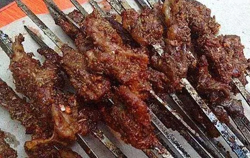 5.那是不是说,新疆烤肉和内地汉民烤肉味道就会一样了呢?答案是no!新疆烤肉,游牧民族不忌讳膻味,所以用大块鲜肉,不腌制,只放盐辣面孜然老三样。吃的时候,由于没有腌制,会有一定的膻味或草腥味,而肉类本身的糖分不足,美拉德反应也不充分,所以,含烟的空气里闻到的主要是辣面和孜然味,由于是大块,烧烤后外酥里嫩,内部多汁,但膻味或草腥味未除。