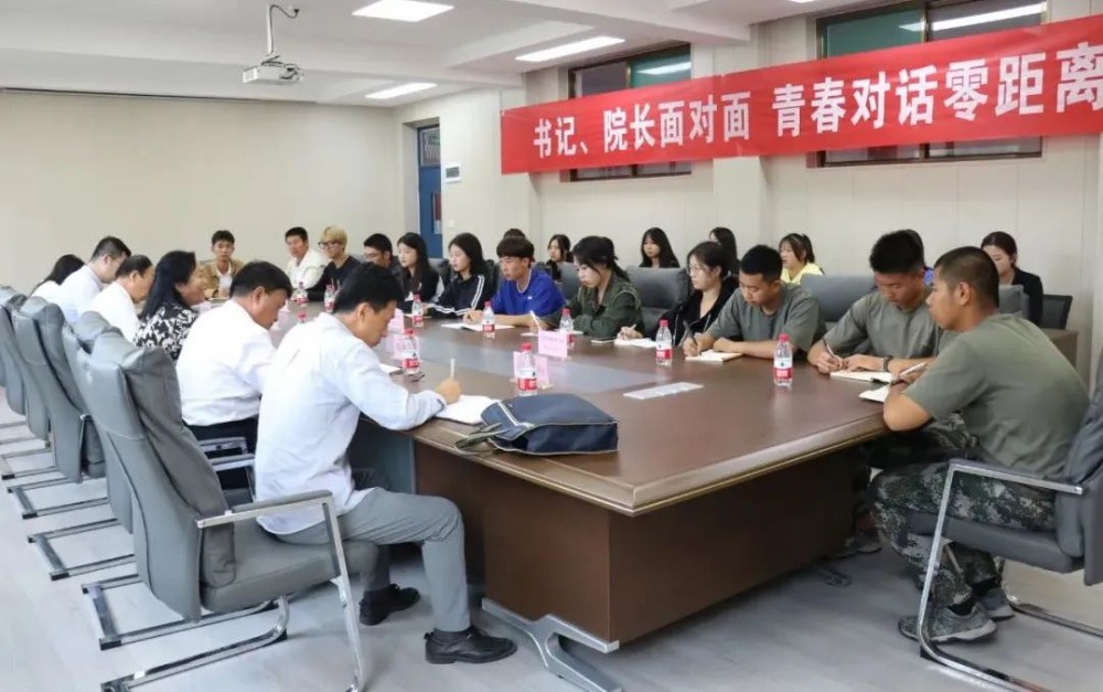 为深入了解学院2023级新生在校学习生活状况,倾听学生心声、用心办好实事,9月21日下午,beat365官网召开“书记、院长面对面,青春对话零距离”师生座谈会。学院党委书记朱选朝、院长王新丽、学生党支部书记焦茂红、团委书记张阳、学生会副主席王思佳及2023级学生干部、团支书、学生代表代表参加了座谈会,会议由院长助理曹大庆主持。