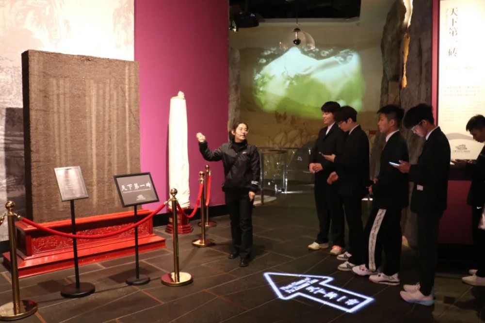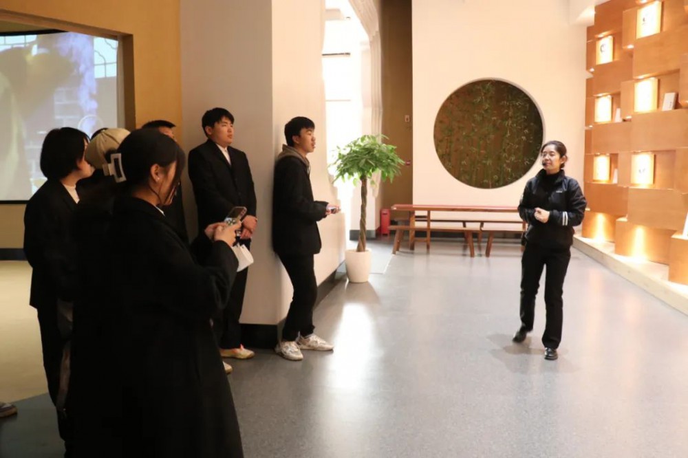 在筑茶工艺区,讲解员为师生讲述了传统制茶工艺——挑茶、剁茶、吊茶、炒茶以及压茶,以讲解和互动的形式为学生提拓展了丰富的制茶知识。
