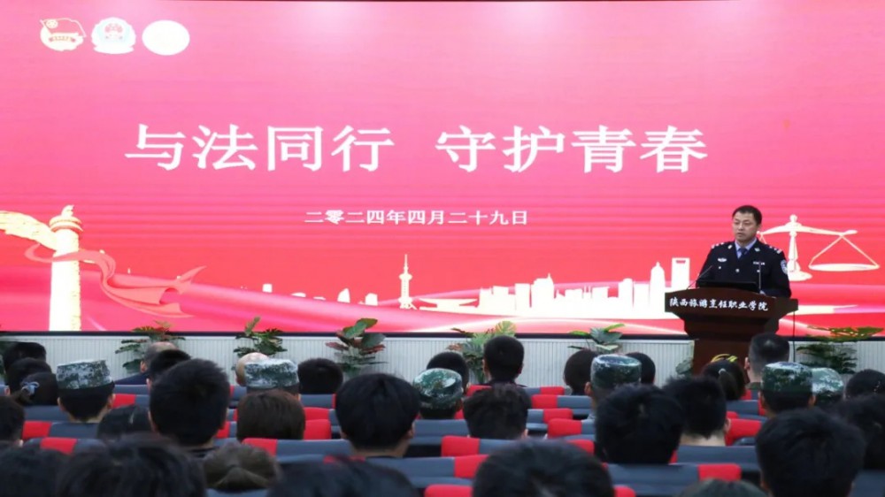 在五四青年节来临之际, 为弘扬“爱国、进步、民主、科学”的五四精神,进一步贯彻全心全意为同学服务的宗旨,推进校园法治工作建设,增强同学们的法律意识,帮助大学生提升保护自身合法权益的能力。4月29日下午,beat365官网团委邀请泾阳县公安局团委、泾阳县公安局三渠派出所来beat365官网开展“与法同行 · 守护青春”法治宣讲进校园活动。