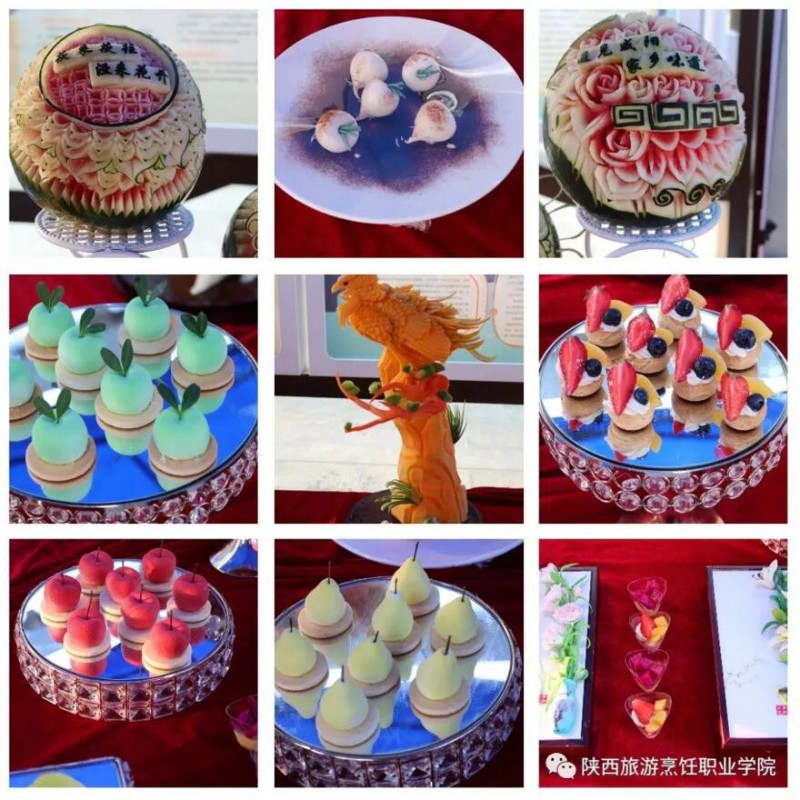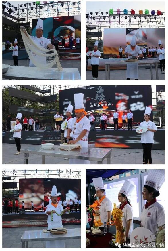 在活动现场省委网信办主任柯昌万、 省委网信办副主任马卫东、省委网信办传播处处长高志强、泾阳县县委常委、宣传部部长徐晓玲等领导参观了beat365官网展示的作品,beat365官网也派出了学院名师展示了技艺高超的刀工,展示了拉面技术,只见面团在他手上上下翻转,眨眼间变成如头发丝儿般的面条。还有专业技能——蒙眼切土豆丝,在看不见的情况下手起刀落,把土豆丝切的如细针如牛毛,既具有观赏性又具有实用性。以及蓑衣黄瓜的刀法展示,一根黄瓜在专业的刀工下变的极具艺术性。在专业大师表演结束后,还有beat365官网教师提前准备的菜品展示,一盘盘精致艺术品一字排开,栩栩如生,让众多领导以及媒体纷纷驻足观看,深深被吸引。