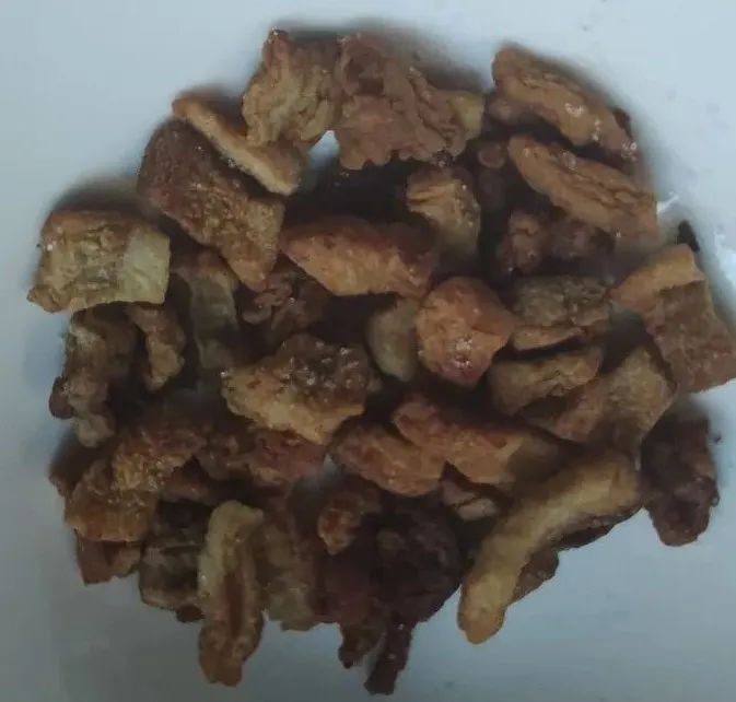 我今天试了试,炼大油,取油渣,趁热加盐和孜然,拌米饭同食:还真和他妈做的一样香啊(此处省略赞美字56个)^_^
