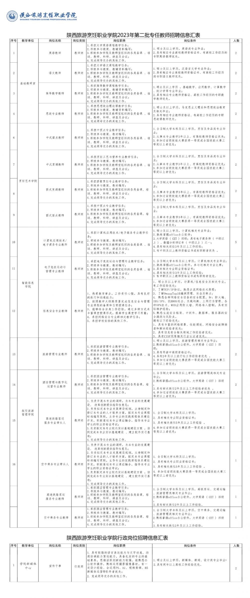 二、招聘岗位及基本要求