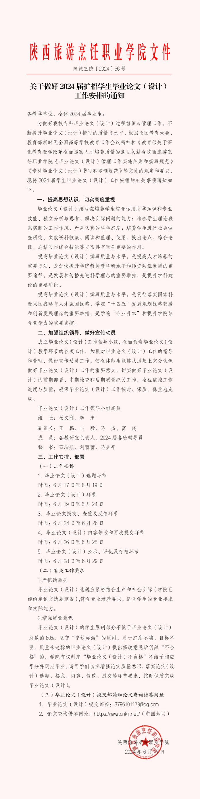 关于做好2024届扩招学生毕业论文(设计)工作安排的通知