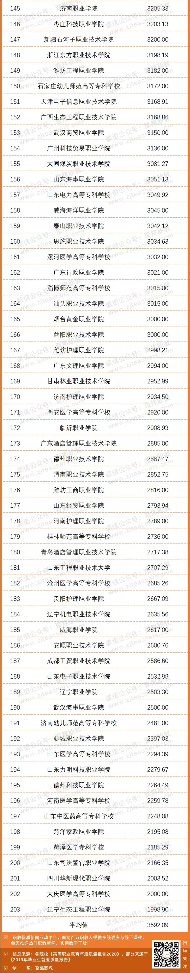 聚焦职教根据《高等职业教育年度质量报告(2020)》和《2019年毕业生就业质量报告》,搜集整理了203所高职院校2019年毕业生月收入数据,并对此进行分析。下面让我们一起来看看吧!
