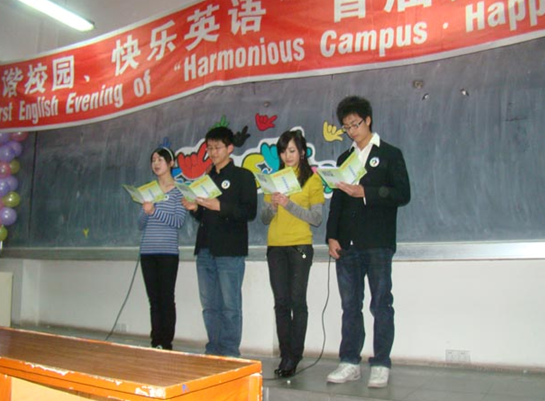 19:00比赛开始,本次活动是由学院英语社团主办,目的是提高全院学生学习英语的兴趣,丰富学生课外活动。学院院长助理王春丽老师、教务处处长杨涛老师,学生处处长李小鹏老师、英语教研组全体老师莅临现场,观看比赛。