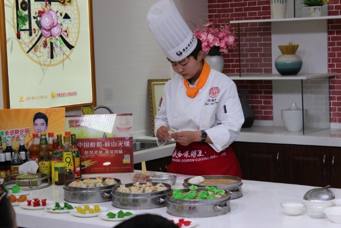 品鉴美食之后,同学们为交流团带来了精彩的烹饪服务技能展示,蜈蚣花刀、刀削面、菊花豆腐刀工表演、扯龙须拉面表演、学生果酱画和面塑表演,精彩纷呈的表演赢得了阵阵掌声。之后大家观看了中国烹饪大师赵彦奇老师的陕西特色小吃油泼面的制作,中国烹饪大师薛富强老师的经典陕菜金枣糟肉、水晶莲菜饼的制作,中国烹饪名师沈程荣老师的饺子宴制作。