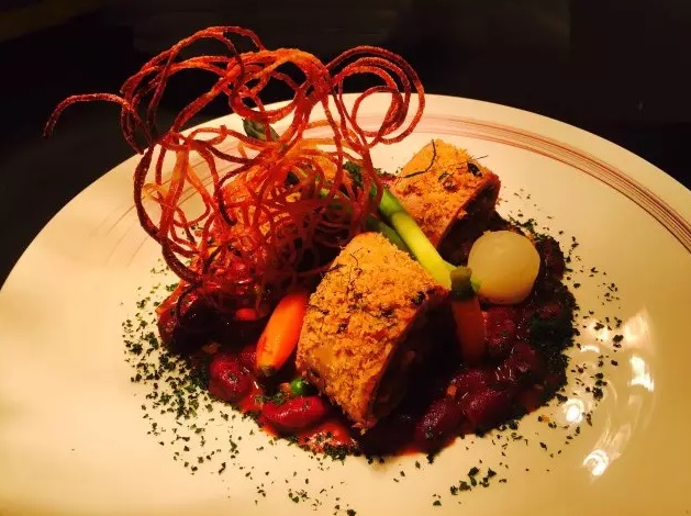 这道菜她应用了一些干果和烧烤酱作为菜品主要的味 道,结合了美国南部迈阿密的风味,做成了一道独特的猪肉卷。