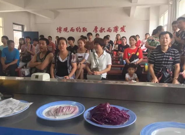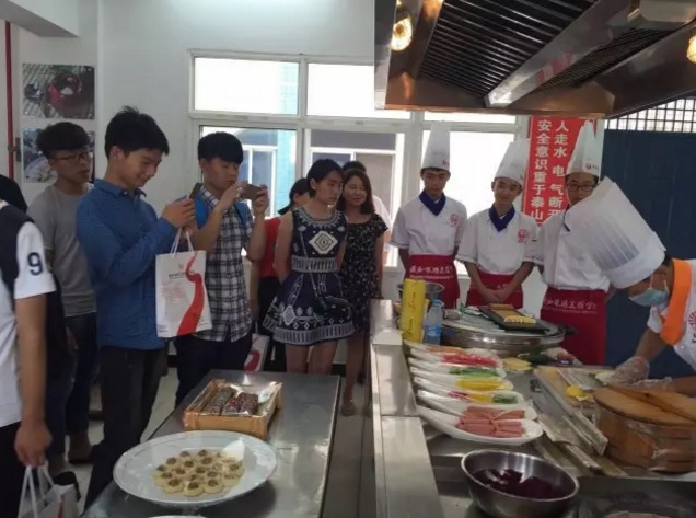 看校学生和家长在陕西宾馆及厨房参观。