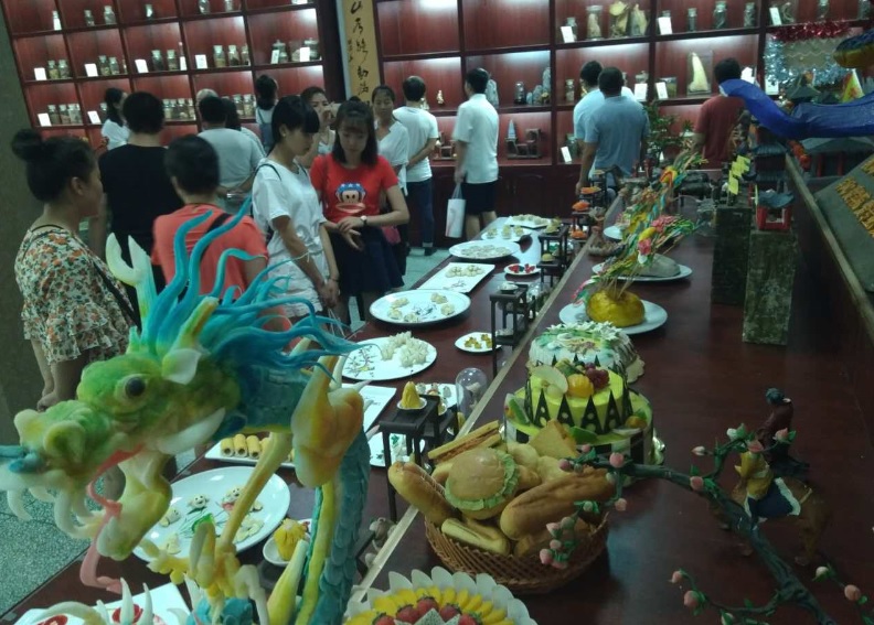 这次前来看校的学生和家长人数之多,热情之高,意向之明确,是对学院的肯定和鼓舞,学院把大家分组编队,分批分组,相继对学院的学生实训大楼的实训教学室及实训操作室进行了参观和观摩,亲眼目睹了老师的现场教学和学生的现场实训课的操练演练现场。对老师的高超烹饪厨艺赞不绝口,当来到标本室和荣誉室时又被大师们的一件件佳作所折服。当来到陕西电视台在学院搭建的《好管家》节目《直通陕旅烹院》的录制现场,又感受到学院是专业的院校,特色的教育,全国的典范,学院的现代多媒体教室、新实训大楼的投入使用又成了学校的一大亮点。中午学院为来访的学生及家长提供了丰盛的午餐和水果。