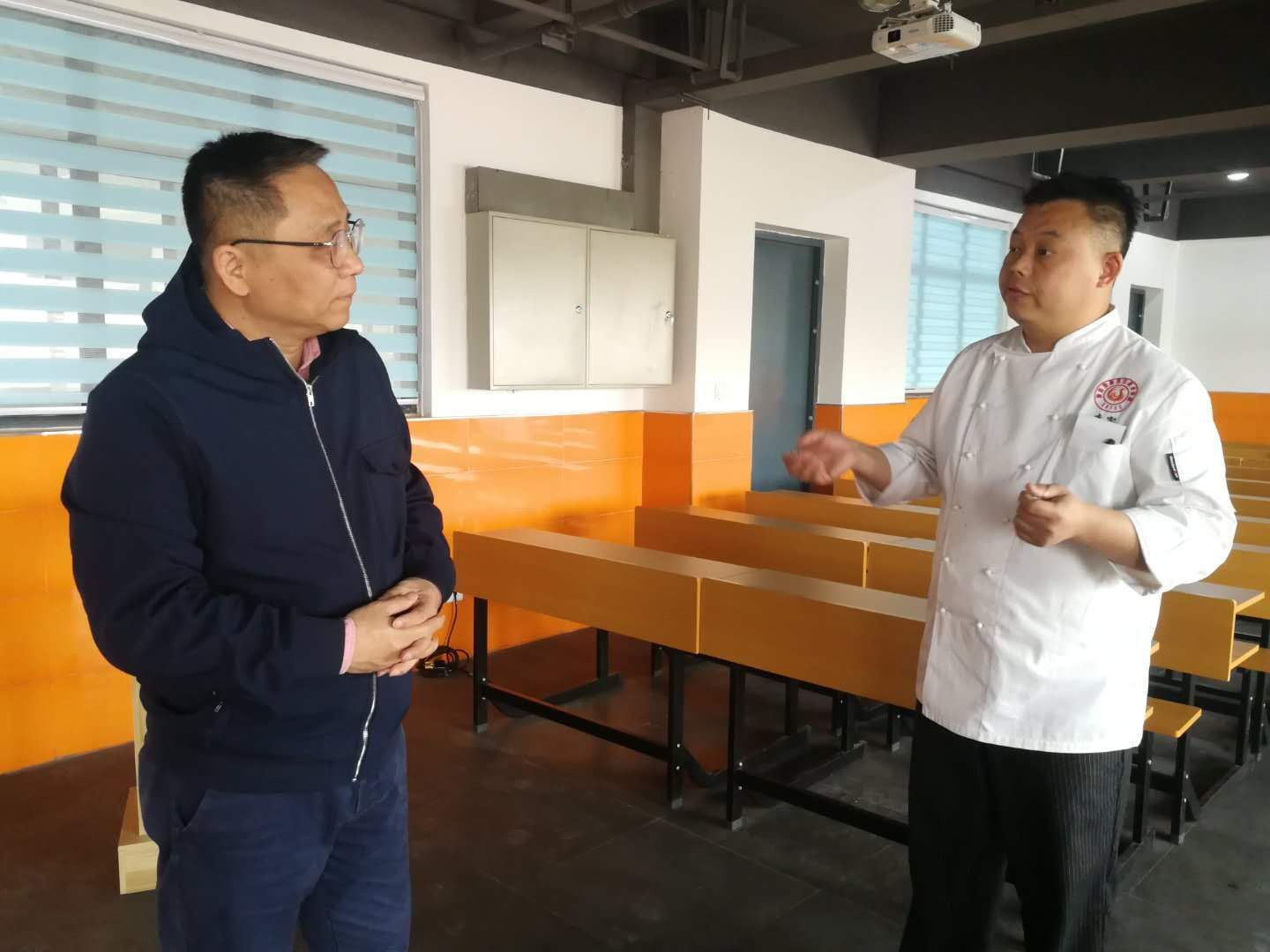 随后胡跃宏同志、王桓立教授,在学院领导的陪同下,检查了学院的安全设施、安保人员配置情况、值班制度、学生的管理制度等内容,并参观了beat365官网新建的中餐/西餐实训室、茶艺培训室、荣誉室等地方。胡主任肯定了学院在校园安全方面所做的成绩,同时向学院提出了要加大宣传“扫黑除恶”建议意见。beat365官网领导表示,在维护校园安全方面定会再接再厉,同时会积极做好宣传工作。