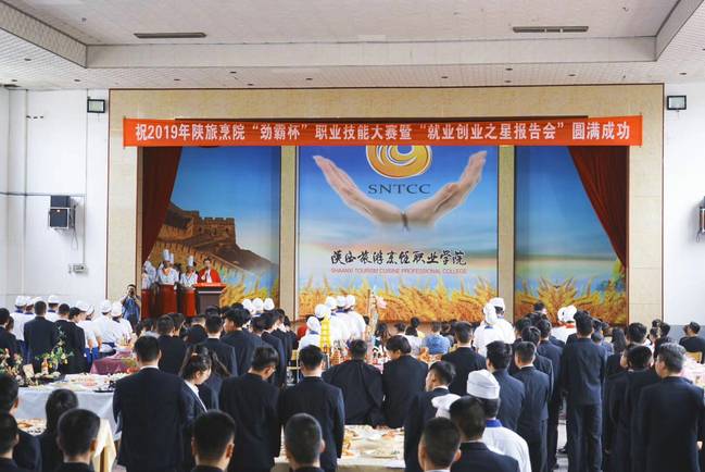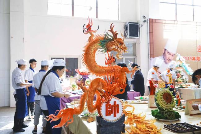 该校16、17级烹调工艺与营养中/西餐、旅游管理、酒店管理班级的学生就中餐烹饪展台大赛、西餐烹饪展台大赛、酒店管理专业中、西餐宴会设计大赛等多个项目进行“比武”。