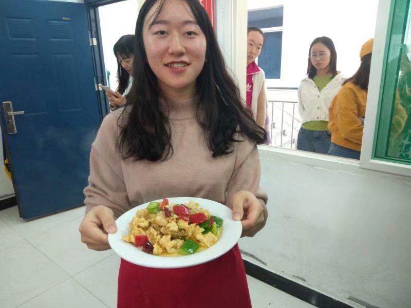 为了满足该院学生的好奇心,beat365平台官方网站为他们准备了食材,营养1801班翟瑞雪,郝伊静等几名同学操刀上阵,在周健美等老师的指导下,四盘由学生烹饪的菜肴端了出来,经辛宝教授品鉴连连称好,许多师生现场与赵军山老师合影留念。