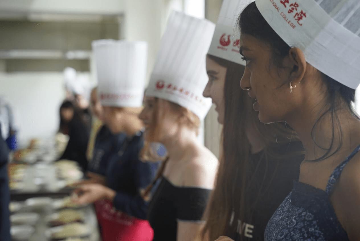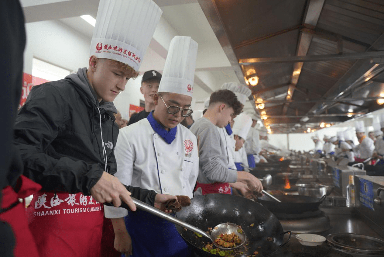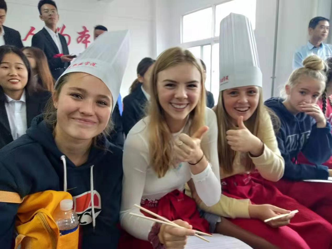 参观结束后,40多名英国学生,在学院大二学生的指导下制作了宫保鸡丁,酸辣土豆丝等菜肴。中国菜,无限的生命力将得以世代传承,走向世界!