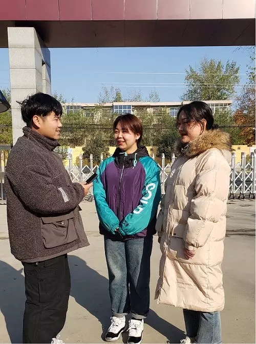 18级2班的王欣宇和丁莉芬同学接受记者采访