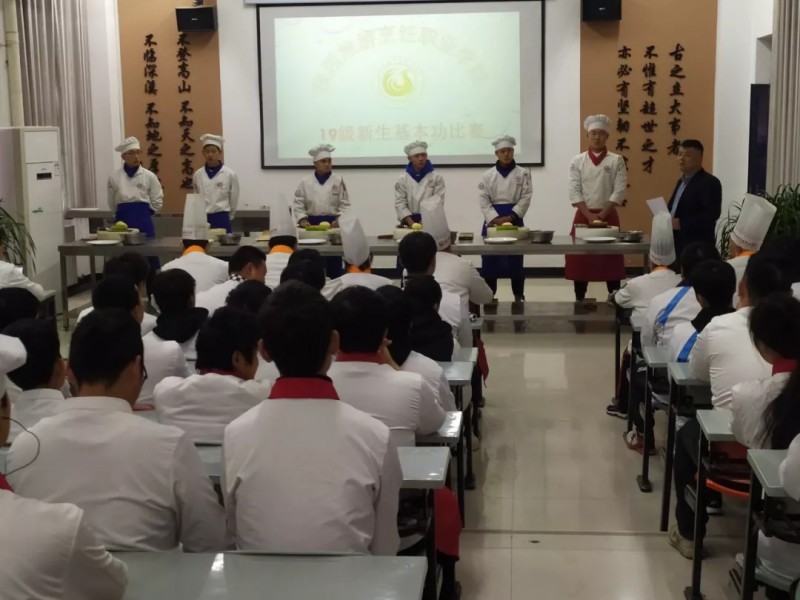 比赛由学院教务处组织,旨在丰富校园文化生活,浓厚学习氛围,促进素质提升,评委由7名烹饪大师组成,采取现场抽签、现场比赛、现场评分的方式进行,参赛选手均系2019级新生,经过前期班初选、系审核,选出23名代表,按抽签顺序,5-6人一组,逐次参加比赛。
