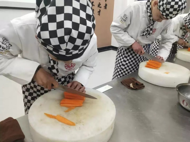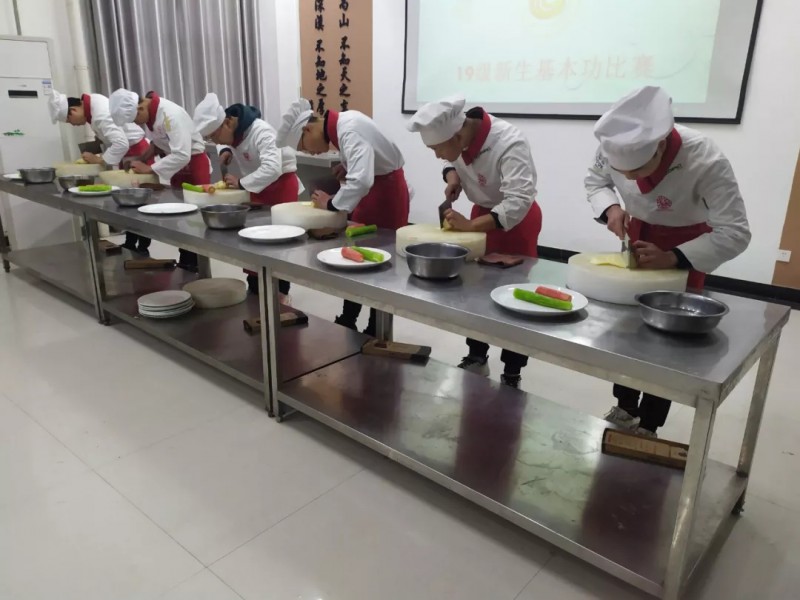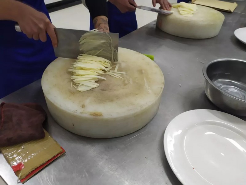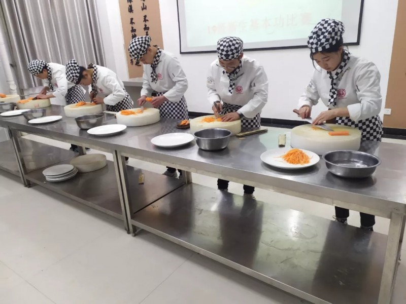 “刀功比赛历来是最受师生欢迎的比赛项目之一,只有每个班里刀工最牛的人才有资格站在这个赛场上。”负责现场组织的专业教师胡建介绍说,重视将课堂向八小时外和校园外拓展延伸,抓好实践性教学环节的落实是学院办学的突出特色。中餐刀功比赛结束后,紧接着5名选手进行了西餐刀功比赛,食材是削皮的红萝卜一根,要求在规定时限内将红萝卜切丝,比赛中也是人人争先抢速度、保质量,每组比赛完成后,台下掌声一片。