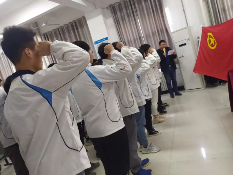 在鲜艳的团旗下,50名新团员举起右手庄严宣誓:“我志愿加入中国共产主义青年团,坚决拥护中国共产党的领导,遵守团的章程,执行团的决议,履行团员义务,严守团的纪律,勤奋学习,积极工作,吃苦在前,享受在后,为共产主义事业而奋斗”。