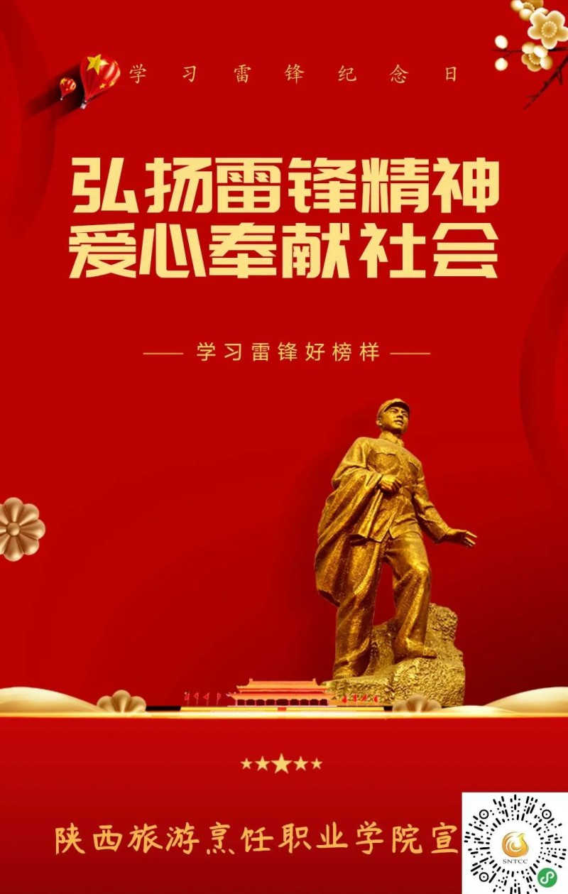 “作为中华民族的传统美德,雷锋精神是每个中国人的实践准则,学雷锋志愿服务活动常抓常受益,真抓真有效。”学院院长王新丽深有感触地说。疫情发生以来,陕旅烹院专程慰问了西安市第八医院等单位的一线抗疫人员,广大师生员工以大义、责任和担当积极抗疫,有的以画为“剑”,为抗疫加油鼓劲,有的以笔为“刀”,颂扬最美逆行者,处处体现出与人民同风雨,同祖国共进步的硬核担当。