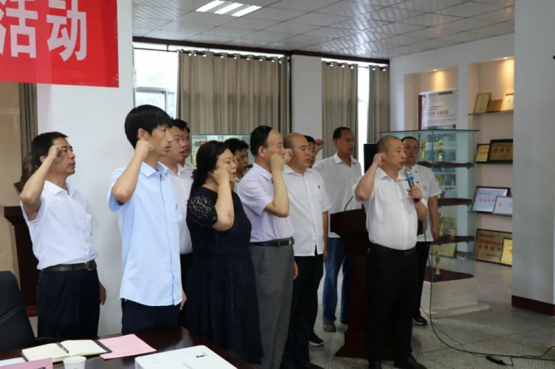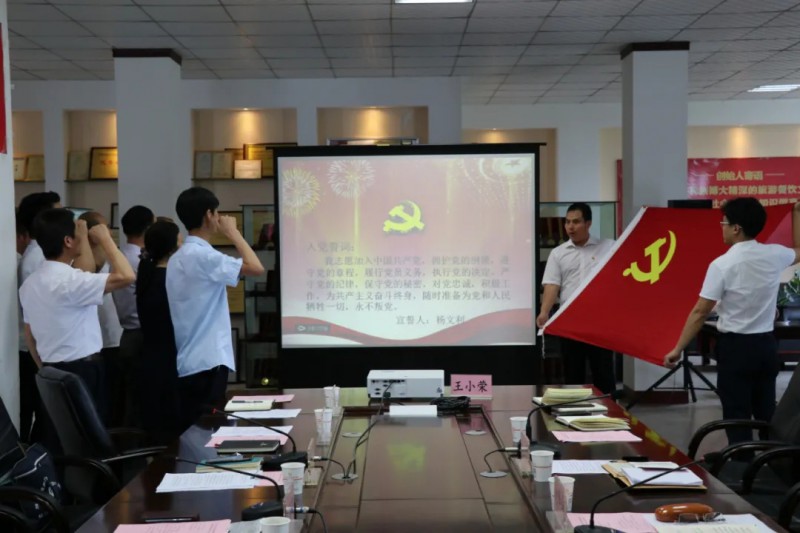 会议第一项,由院纪委书记杨文利同志带领所有与会同志面向党旗,庄严的举起右手,重温入党誓词。第二项,由酒旅党支部书记王曙同志郑重宣读党章,提醒党员同志们不忘初心、牢记使命。