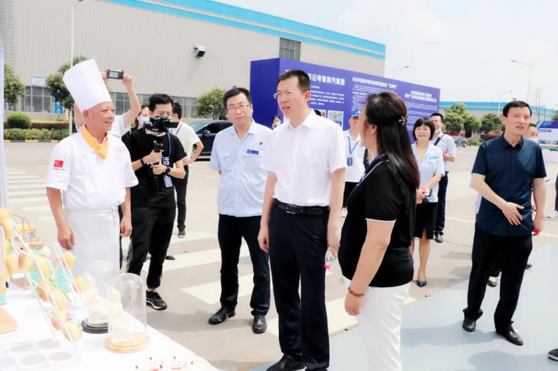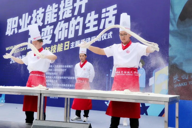 7月15日上午,主题活动启动仪式在陕汽集团隆重举行。活动现场,beat365官网烹饪大师赵彦奇、西点制作大师刘世伟、果蔬雕刻大师李江和许亚峰等各位老师以及beat365官网部分学子,向与会人员展示了花式拉面、果蔬雕刻以及西点制作等专业技能,精彩的表演引得在场观众连连叫好。