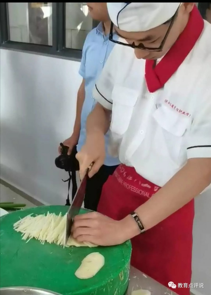 走进烹饪实训室,同学们都在认真学习和练习基本功,那稳重的身姿、还有娴熟的操刀手法,一盆盆匀称细致的土豆丝在手腕晃动中丝丝排列,老师教的认真,学生学的专注。最幸福的是我们还品尝了老师现做的拔丝葫芦(寓意福禄),入口甜香绵糯,令人难忘的味道。王新丽院长说我们参观的实训室,是中国烹饪协会在西北地区唯一的全国旅游及烹饪实训示范基地,参观后方知当之无愧“西北唯一”。