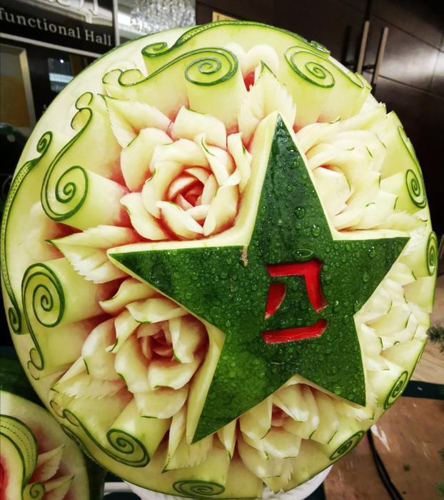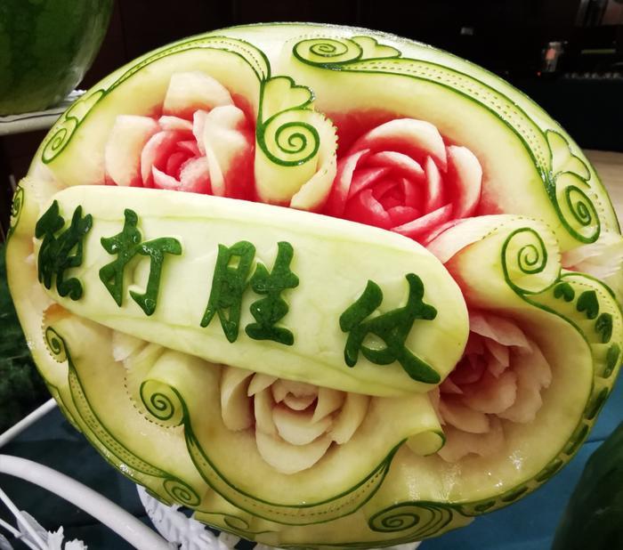 西安新闻网讯 “八一献礼” 师生雕刻出“闪耀的军星”果蔬作品展 “八一献礼” 师生雕刻出“闪耀的军星”果蔬作品展 8月1日是“八一”建军节,beat365平台官方网站李江和许亚锋老师带领三名学生翟延驰、南煜龙、张栋,从当日凌晨开始,利用短短的大半天时间,采用西瓜、冬瓜、生姜、芋头、南瓜、泡沫、萝卜等原料,用平凡的视角,精心雕刻出《闪耀的军星》一组果蔬作品,包括五角星、党旗、听党指挥、能打胜仗等 ,为“八一”建军节献上厚礼,祝福中国人民解放军建军93周年,致敬现役军人和退役军人。 据悉,这些作品当日下午将在西安市《闪耀的军星》活动现场展出,随后在校园内展出。激发人们热爱人民军队,拥军优属的热情,形成尊重、关心、爱护人民军队的良好社会风尚。 (文/图西安报业全媒体记者侯智)