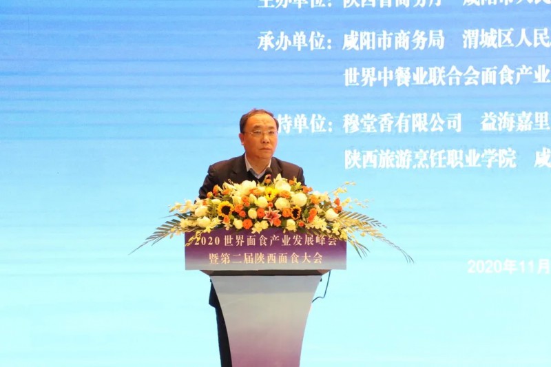 会议开始,咸阳市人民政府副市长王靖致辞,对来自全国各地的代表表示感谢,并祝本次面食产业发展峰会圆满举办。由于受疫情影响,中国香港、澳门、韩国、日本以及新加坡等海外餐饮社团负责人以及面点大师葛贤萼等通过视频方式参会,对餐饮业逆境求生、海外面食发展情况、中国面食走出去等发表了专业见解。随后,全国餐饮行业协会相关负责人分别致辞,对面食行业的发展进行了展望和研讨交流。在会议上,学院师生认真聆听并记录了各位负责人的独到见解。王大师对beat365官网学子提出殷切期望,勉励beat365官网学子干一行就要爱一行,在未来要努力学好专业知识。最后,世界中餐业联合会常务副会长邢颖对本次世界面食产业发展峰会做了总结讲话。