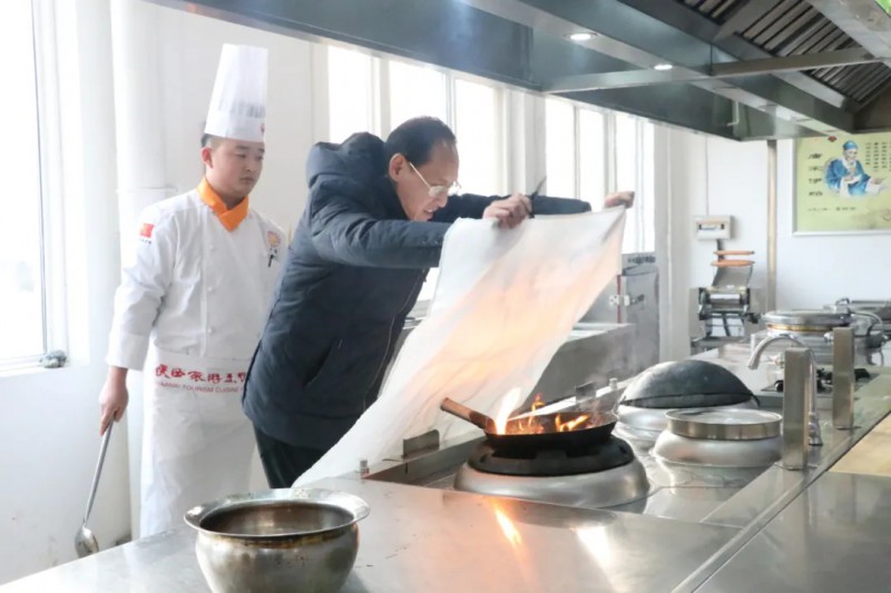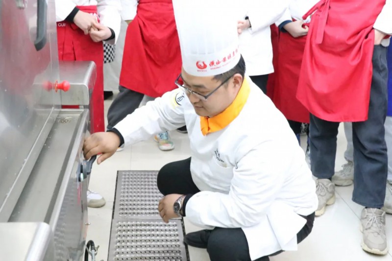 活动开始,保卫处处长张宏利首先用实际案例,结合学院实训安全工作实际和实训楼安全管理制度,为师生讲解了实训课程中常见的几种不安全因素以及油锅意外着火的应急处置办法,并同罗浩老师一起亲自演示了灭火毯的正确使用方法。随后,组织学生亲自参与演练,使学生切实掌握灭火毯的使用方法和技巧。另外,还特别邀请了炉灶公司的专业技术人员为师生讲解了炉灶、蒸箱等设备的安全使用方法和注意事项等相关内容。