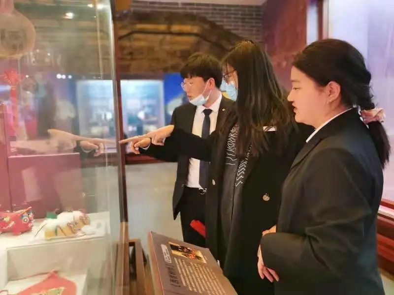 除此之外,同学们还走近国艺秦腔馆。通过观看秦腔有关实物、仿真人像、油画等感受独具特色的秦腔艺术。最后,同学们参观了位于塔西南侧的三秦非遗馆,此馆充分利用新科技将“华县皮影戏、安塞腰鼓以及西安鼓乐”等陕西非遗魅力展现的淋漓尽致。