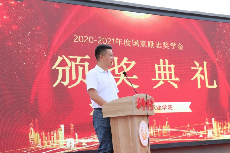 下午18点30分,颁奖典礼在庄严的国歌声中拉开帷幕。资助中心主任陈红娟老师首先宣读了获得本年度国家奖学金和励志奖学金的学生名单。副院长杨文利致辞,对本次获奖学子提出表扬,勉励其他学生将他们作为学习的榜样,珍惜在校时间,勤学苦练,只争朝夕,不负韶华。