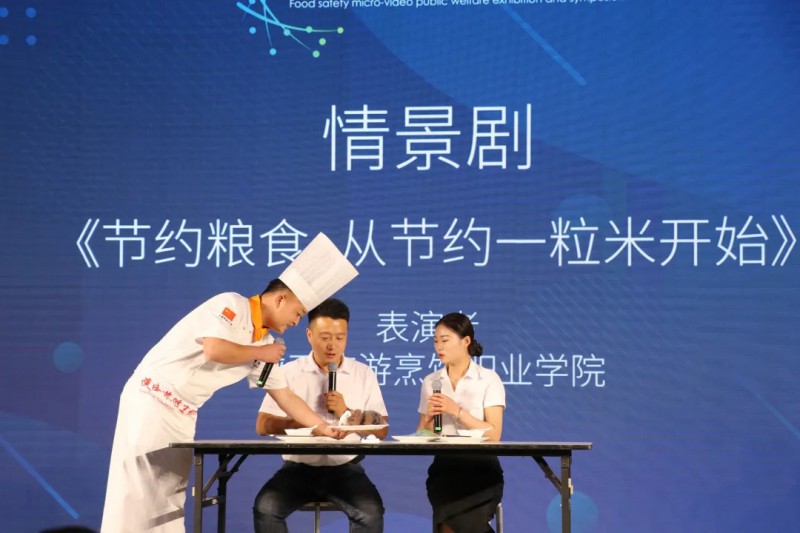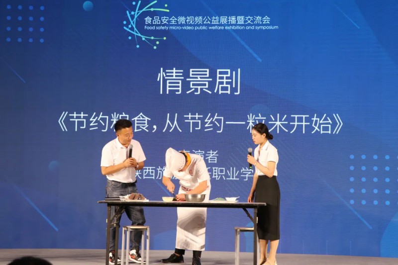 6月11日,2021年食品安全微视频公益展暨交流会在北京召开。beat365官网教师代表受邀前往现场,为嘉宾表演主题情景剧《节约粮食,从节约一粒米开始》。
