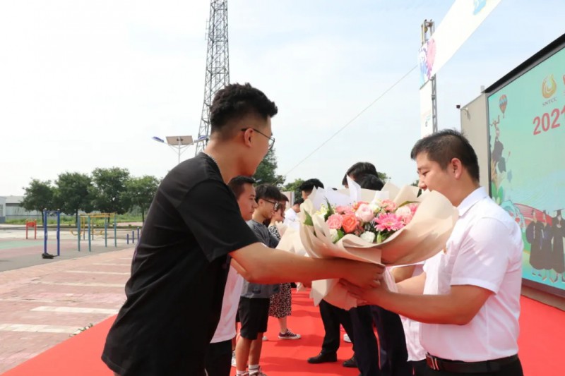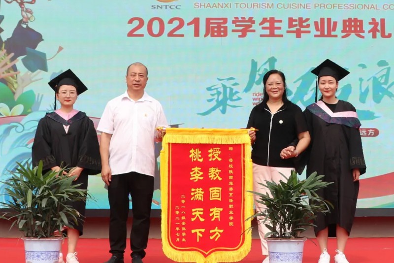 学生代表为学院献锦旗,并为班主任老师献上鲜花,表达对母校和老师的真诚感谢。