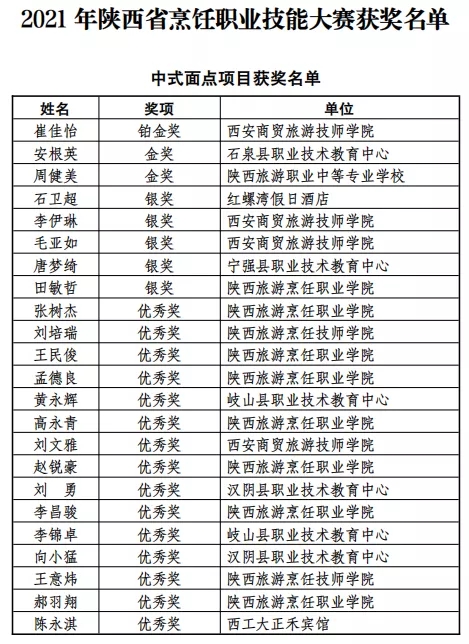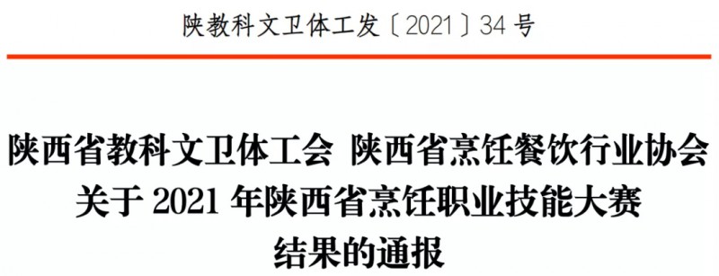 根据陕西省教科文卫体工会委员会、陕西省烹饪餐饮行业协会《关于 2021 年陕西省烹饪职业技能大赛结果的通报》陕教科文卫体工发〔2021〕34 号文件,2021 年陕西省烹饪职业技能大赛于9 月 22 日圆满完赛。通报beat365官网获此次大赛优秀组织奖,师生百余人分别荣获“中式面点、西式烹调、中式烹调(果蔬雕刻)、中式烹调(热菜)四个项目金奖、金奖、银奖及优秀奖。