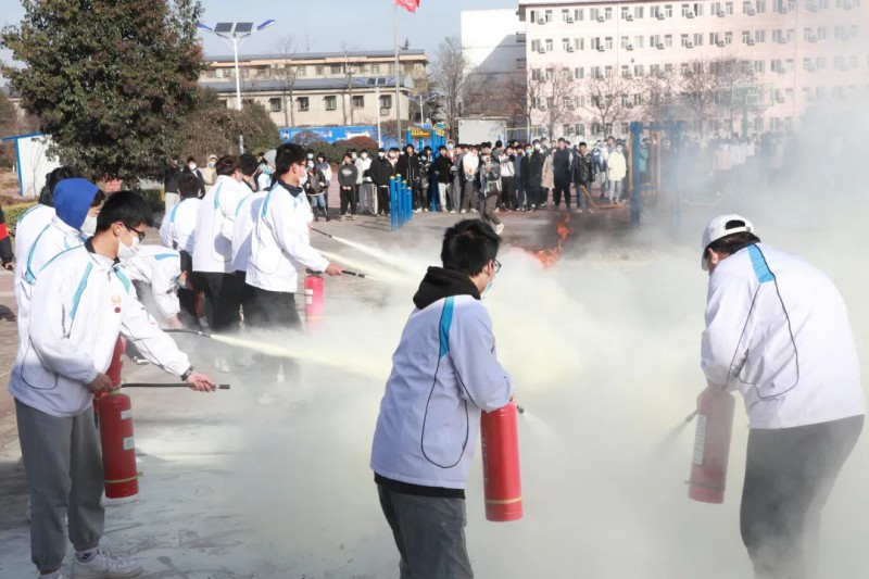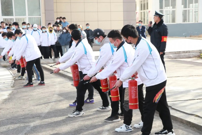 随后,2021级每班派10名同学,听到口令后,取灭火器奔赴着火点,进行灭火,操练完毕灭火器放回原位。现场进场有序、动作逼真、态度严肃。