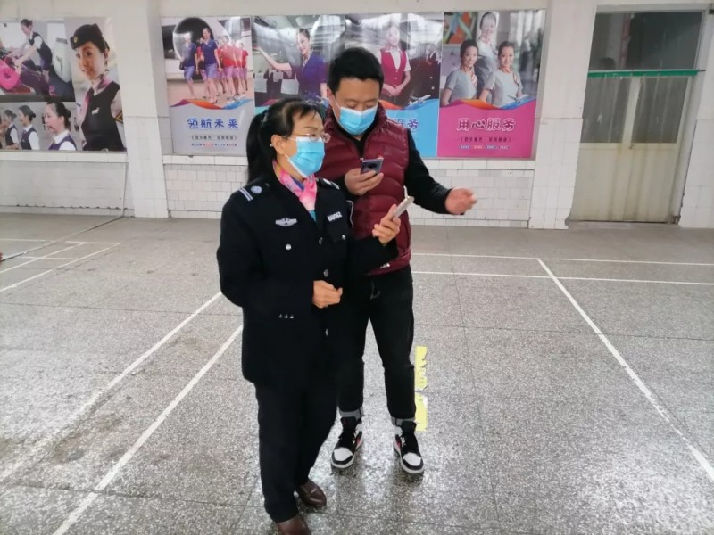 学生党支部宣传委员连超同志协助医护人员扫码登记。