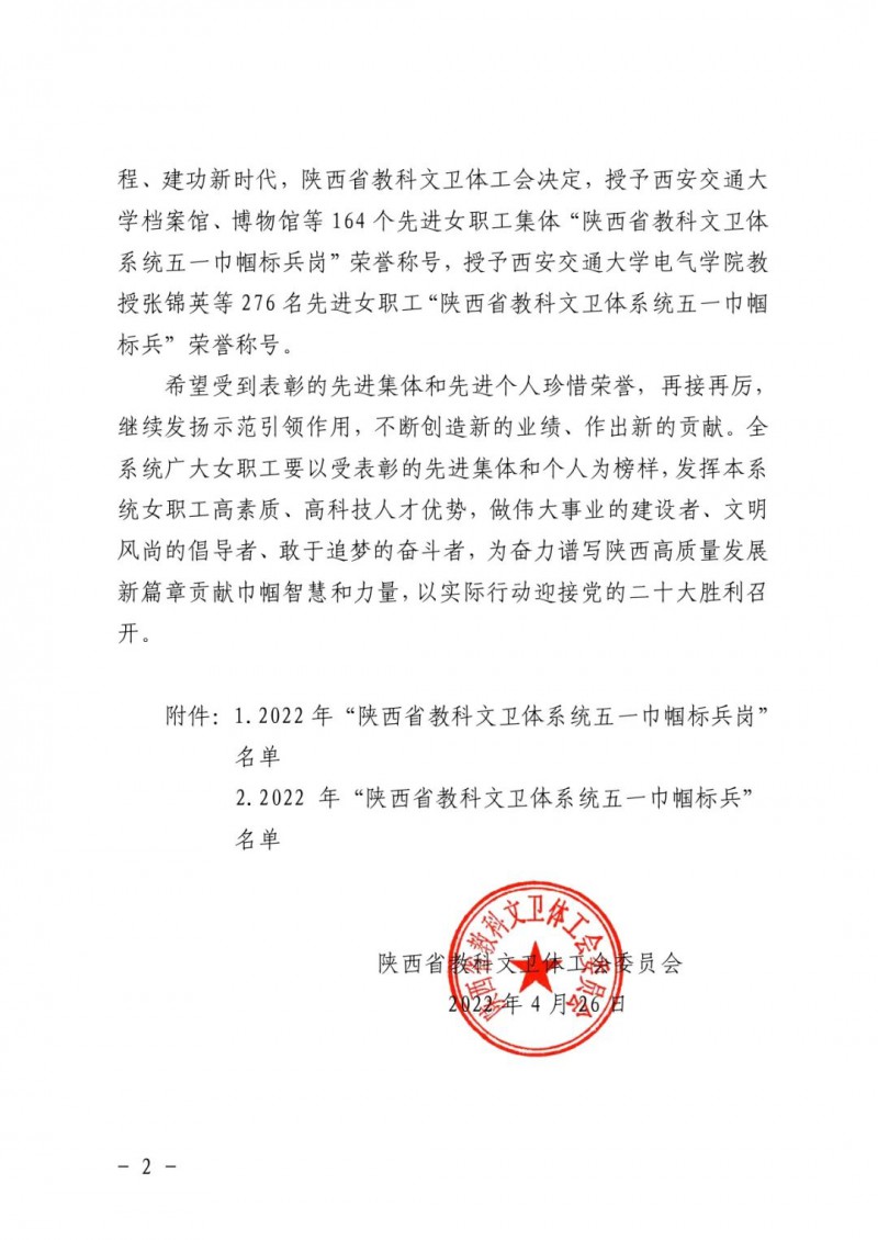 近年来,陕西省教科文卫体系统广大女职工坚持以习近平新时代中国特色社会主义思想为指导,全面学习贯彻党的十九大和十九届六中全会精神,在决胜全面小康社会、抗击新冠肺炎疫情、复工复产和推动高质量发展等方面做出了突出贡献。