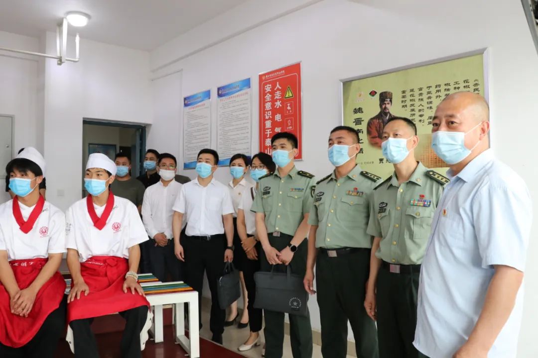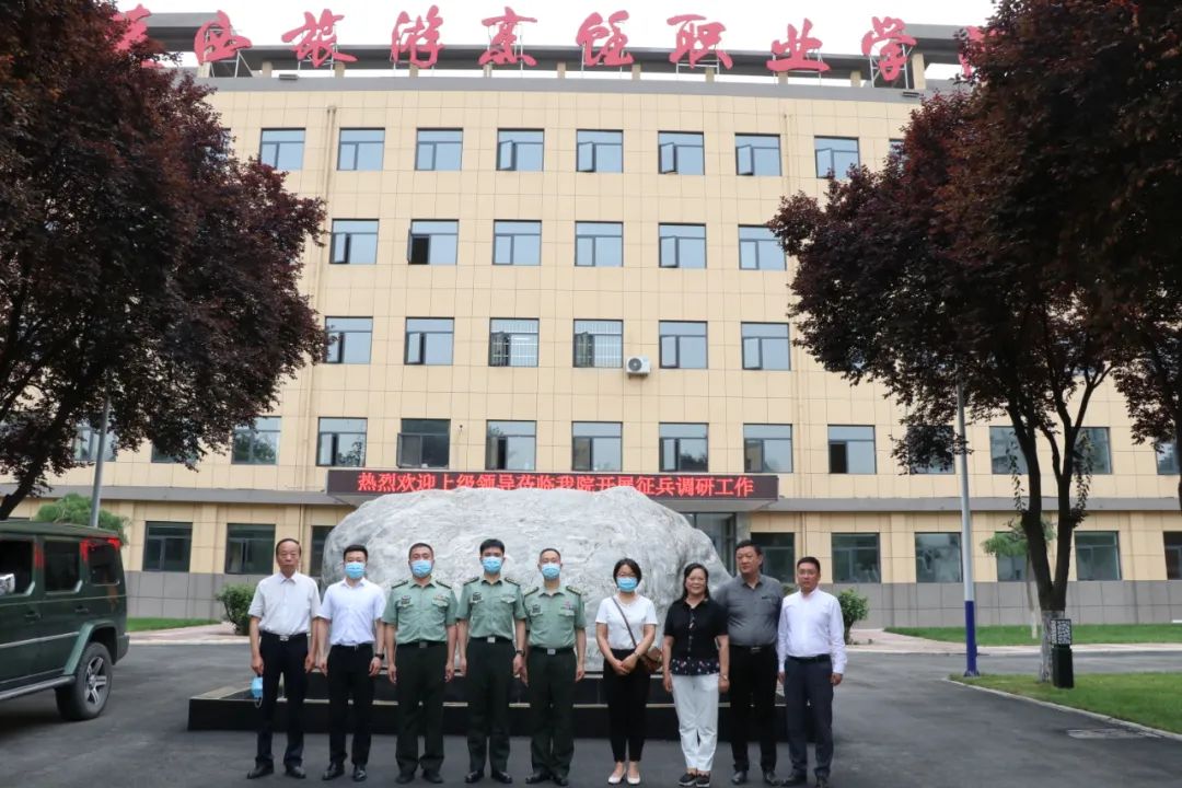 学院党委书记朱选朝、院长王新丽、副院长杨文利、副院长杨涛、征兵工作站站长马杰、教务处处长高鹏、科研处处长王鹏、招生办主任毛瑞强、副主任富晓等陪同参观学院征兵工作站、学术报告厅、校史馆、电子商务平台、烹饪实训大楼等基础设施并参加座谈会。