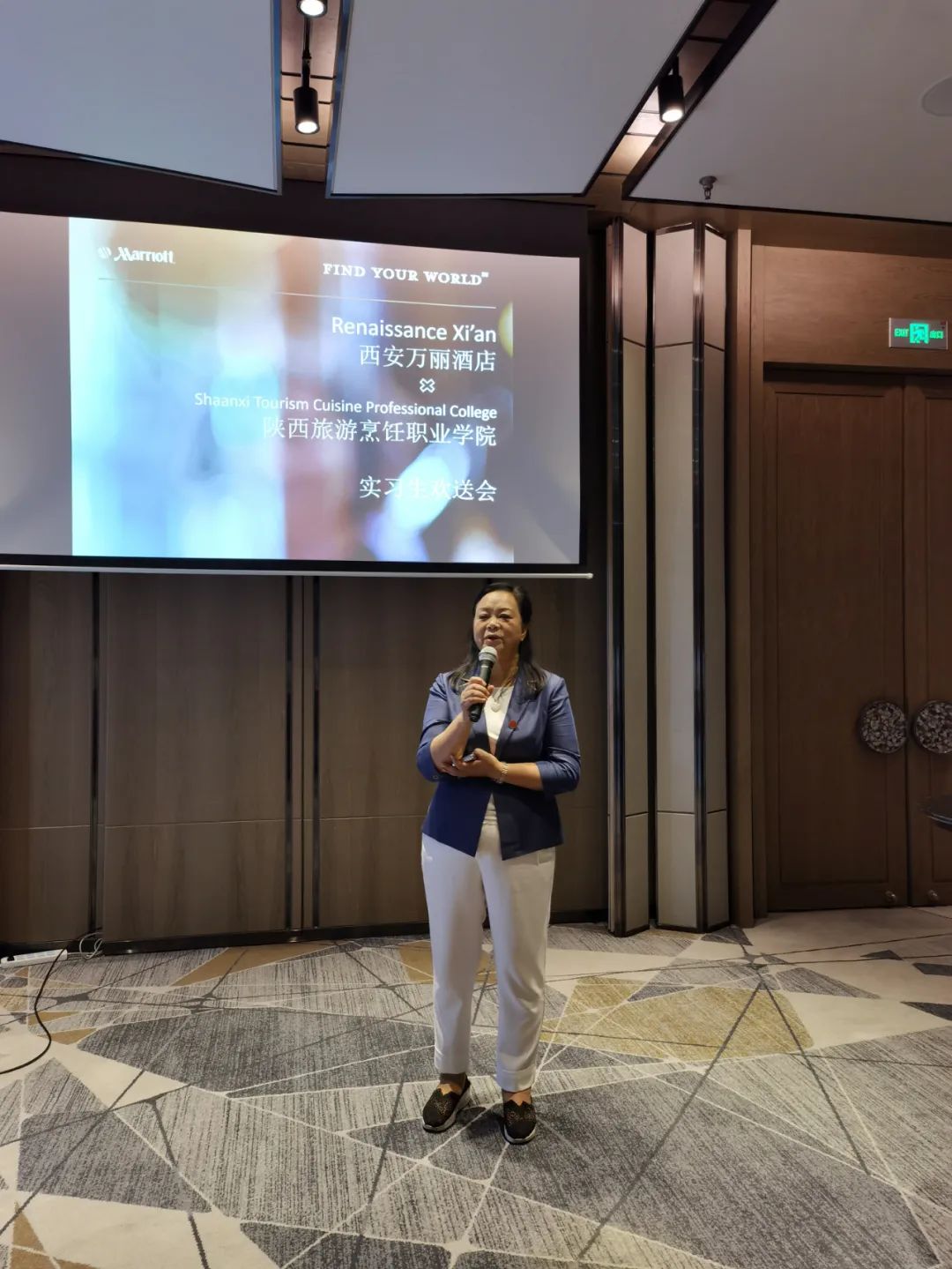 最后,王新丽院长在欢送会上表达了对酒店的感谢,对目前的就业形势做了分析,指出旅游、酒店行业目前正处于复苏阶段,特别需要专门人才,鼓励大家积极投身旅游、酒店行业。