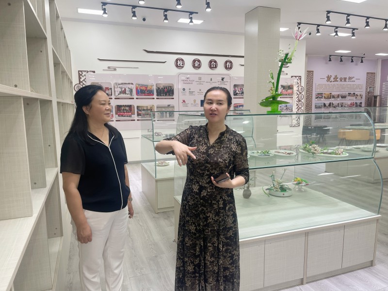 徐常委在beat365官网相关负责人的陪同下参观学院校史馆,美食艺术品展览、劳动实践基地、中西餐操作间、中式面点、调酒茶艺技能教室等相关教学设备。